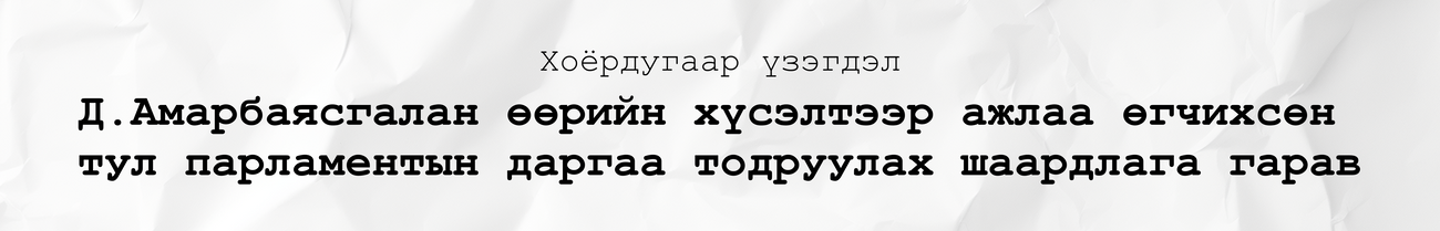 Түүний хувьд “Надад тохирох, ухрах бодол алга” гэж мэдэгдэл хийсэн ч маргааш нь өөрөө өргөдлөө өгчихсөн. Зохиолын дагуу явагдах гэдэг нь ахиад л энэ болов.