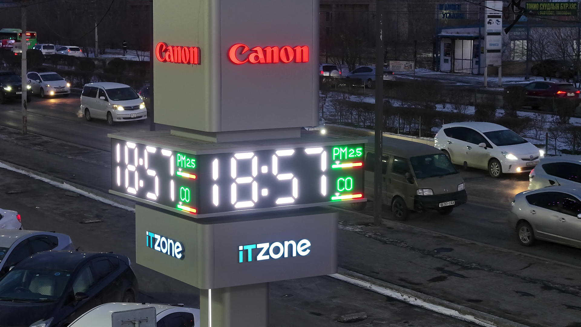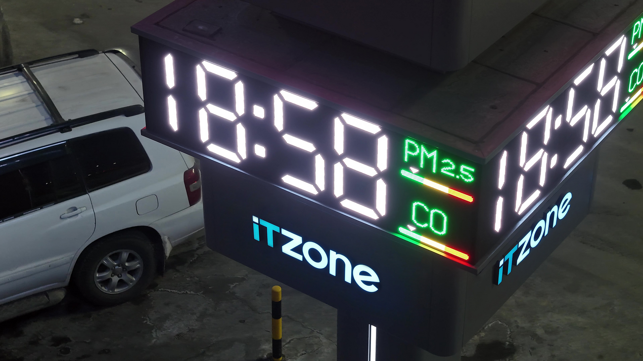 "ITZone" компаниас нийгмийн хариуцлагын хүрээнд суурилуулсан энэхүү цаг нь цаг заахаас гадна цаг агаар, агаарын чанарын индекс (AQI), PM2.5 тоосонцор болон CO-ийн түвшинг шууд мэдээлнэ. Ингэснээр иргэд эрүүл мэндээ хамгаалахад шаардлагатай мэдээллийг цаг алдалгүй авах боломж бүрдэж байна.