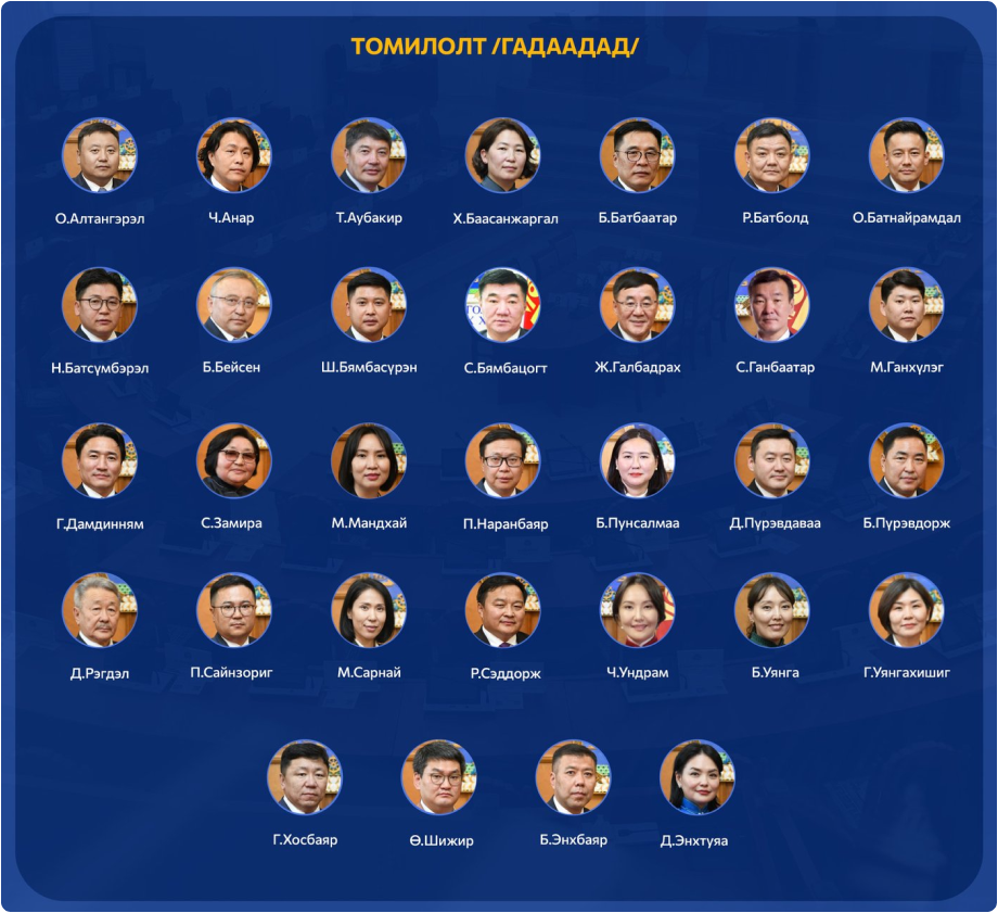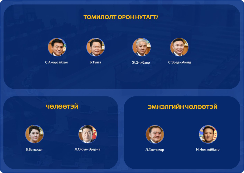 Мөн УИХ-ын дөрвөн гишүүн орон нутагт томилолттой, хоёр гишүүн чөлөөтэй, хоёр гишүүн эмнэлгийн чөлөөтэй байна.