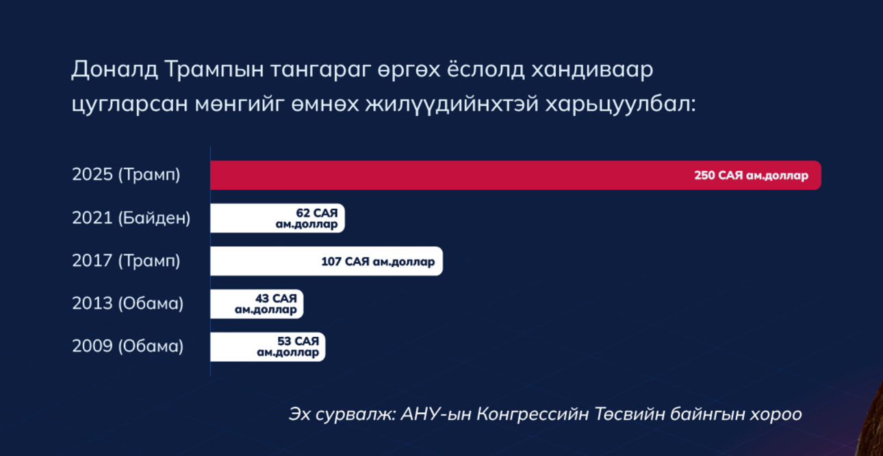 Доналд Трампын тангараг өргөх ёслолд хандиваар цугларсан мөнгийг өмнөх жилүүдийнхтэй харьцуулбал: