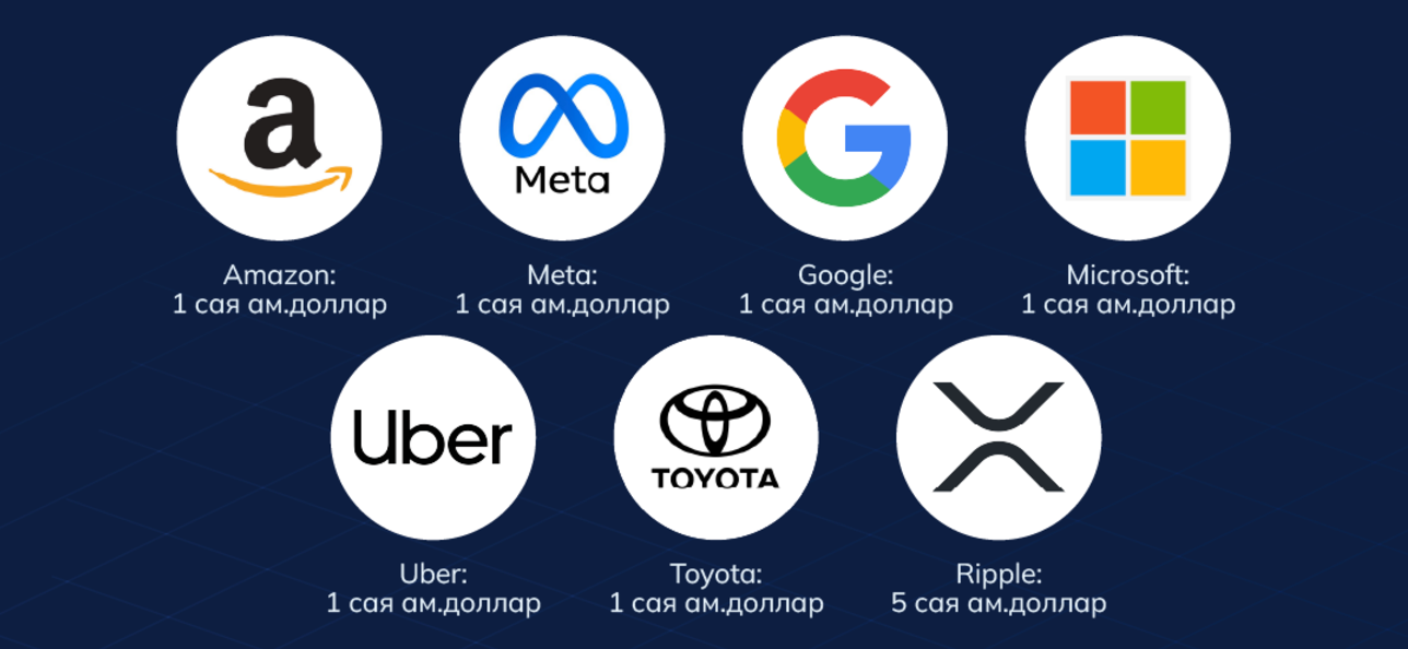 Технологи, хиймэл оюун ухаан, криптовалютын салбарын корпорациуд болон гүйцэтгэх захирлууд сая сая доллар хандивлажээ. Үүнээс дурдвал: