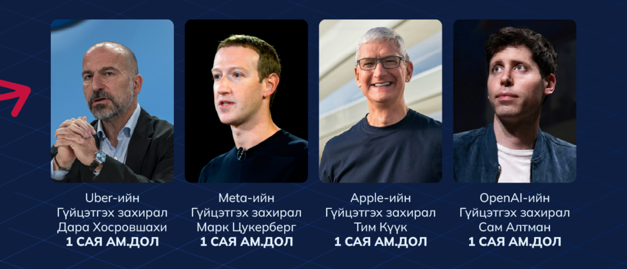 Мөн тангараг өргөх ёслол болон бусад хүндэтгэлийн ёслолтой холбоотой үйл ажиллагаанд “Tesla”, “X” компанийн гүйцэтгэх захирал Элон Маск, “Amazon”-ыг үүсгэн байгуулагч Жеф Безос, “Meta” компанийн гүйцэтгэх захирал Марк Цукерберг, “TikTok”-ийн гүйцэтгэх захирал Шоу Зи Чу нар оролцлоо.